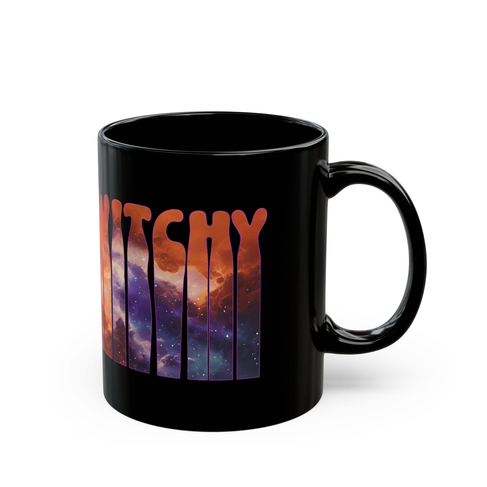 Channel your inner cosmic witch with this bold and beautiful WITCHY galaxy mug. Featuring psychedelic, retro-styled lettering filled with a nebula-inspired color palette, this black ceramic mug is perfect for witches, stargazers, and lovers of all things magical.